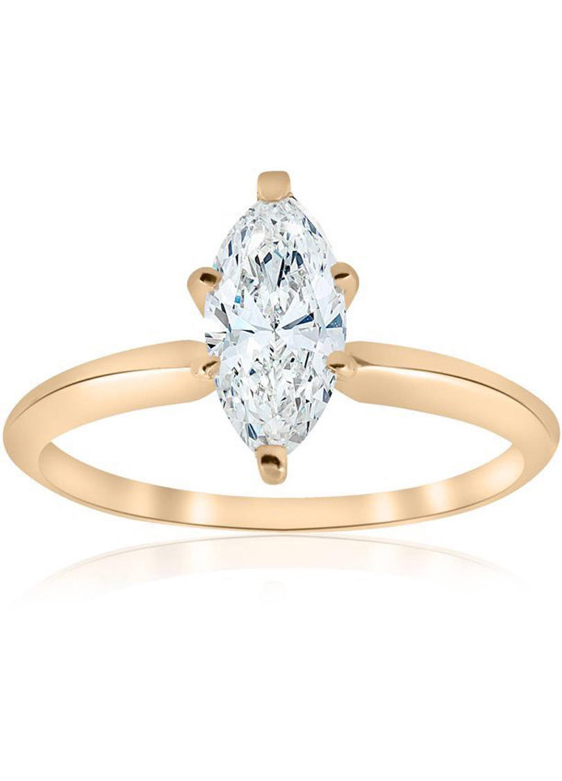 1 Carat marquise simulated diamond solitaire in prong setting on a solid 9 Karat Gold band