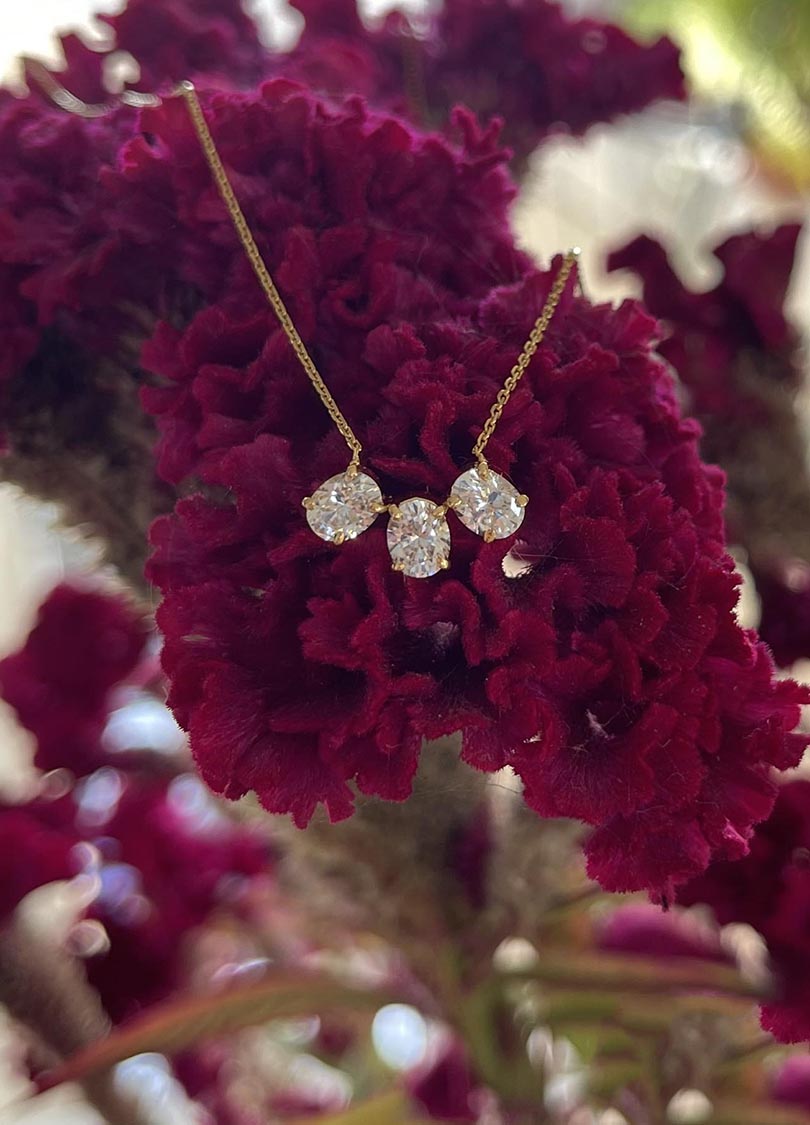 Three petite oval shaped simulated diamonds in a delicate gold chain