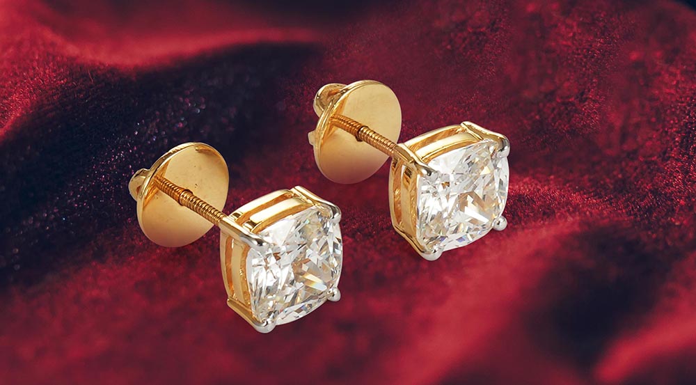 To enhance the beauty of these simulated diamonds, we stud them in 9K solid gold. We do not use gold plating or gold filling; all our jewellery is manufactured in solid 9K gold.